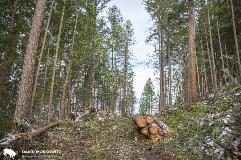 Text and photographs by David Moskowitz At the northern end of the home range of the Southern Selkirks herd of Mountain caribou, a progressive experiment in community based forestry and watershed management has been underway for the past 25 years. I spent a morning out in the field with the forestry manager for the Harrop-Procter Community Forest, visiting a timber harvest. In the afternoon I visited their small scale mill where they process many of the logs they harvest, producing a variety of high value wood products.
